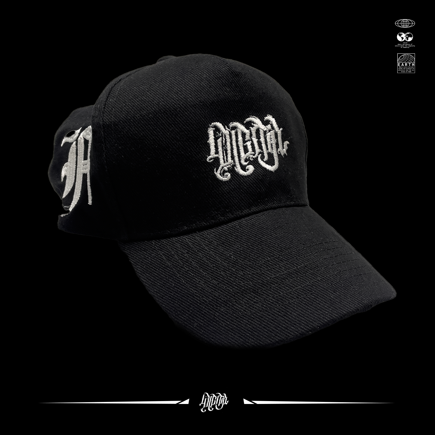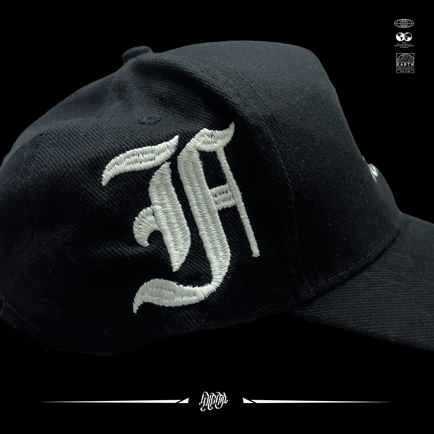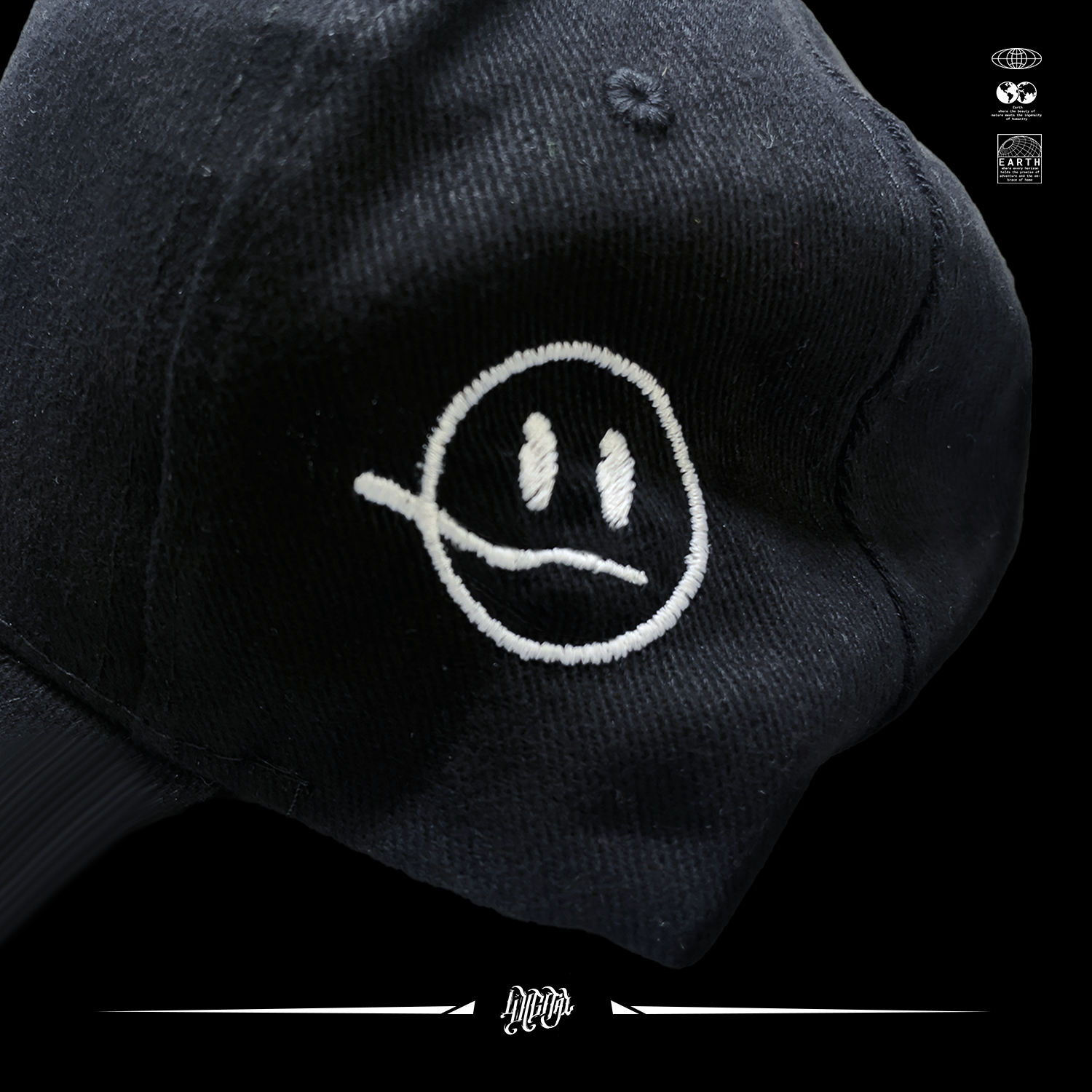Cappello 100% Cotone con visiera a Becco, Regolabile con cinturino posteriore, ricamato su fronte e laterali, F lato destro, smile che fuma lato sinistro.