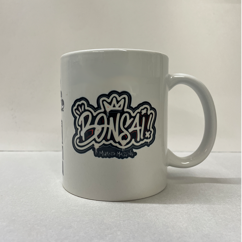 Tazza bianca con logo Muretti Messina, Bonsai e Stretto Cypher